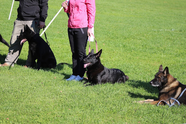 Palkintojen jakoa edelsi marssi, jonka jälkeen järjestäydyimme riviin päätuomarin puheen ja palkintojen jaon ajaksi. 38 saksanpaimenkoiraa istui metrin päässä toisistaan sulassa sovussa. Muiden kilpailijoiden kanssa ääneen ihmettelimme mustien sakemannien suurta määrää, joka paljastui vasta kun näimme rivissä kaikki osanottajat.  Aurinko paistoi ja fiilis oli loistava!