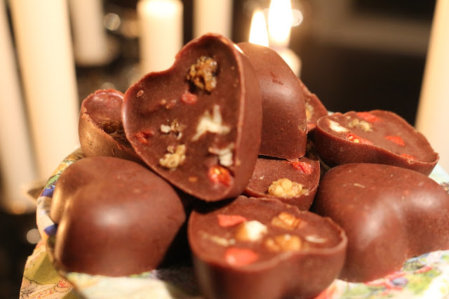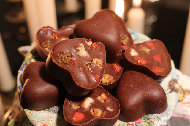 Olin viikonloppuna paikallisilla hihhuli/hyvinvointimessuilla ja söin siellä todella hyvän makuista raakasuklaata. Pennasen Sepin ja Anne-Maria Melkkon kanssa siinä sitten kilpaa arvuuttelimme mitä suklaa sisältää ja päätin saman tien kokeilla saman tapaista kotona. Siitä sai siis alkunsa tämän ohjeen kokeilu ja pakko myöntää, että aivan ihanan makuista suklaata tulikin. Kutsuimme Tuton kanssa itsemme (siis Tuto ei ollut messuilla, koska on jo ihan tarpeeksi hihhuli muutenkin) Anskun ja Sepin luokse kylään seuraavalla teemalla: Sepi valmistaa suklaata, minä kirjaan ohjeen blogiini ja otan kuvia. Eikös olekin mielettömän reilu työnjako?! Ja saan samalla arvokasta oppia suklaan teosta. Nimittäin siinä vaiheessa kun minä vasta ensimmäisiä kertoja kuulin superfoodeista ja raakasuklaasta, oli Sepi jo asiantuntija näissä jutuissa. Mutta Se suklaajuttu tulee myöhemmin se. Nyt saat Rakas Lukijani tyytyä tähän minun itseni kehittelemään suklaaohjeeseen, mutta kannattaa pysyä tiukasti kanavalla sillä jotain erittäin mielenkiintoista on tulossa, vieläpä ennen joulua:) Eli joulusi tulee olemaan pelastettu- ainakin raakasuklaan osalta!
