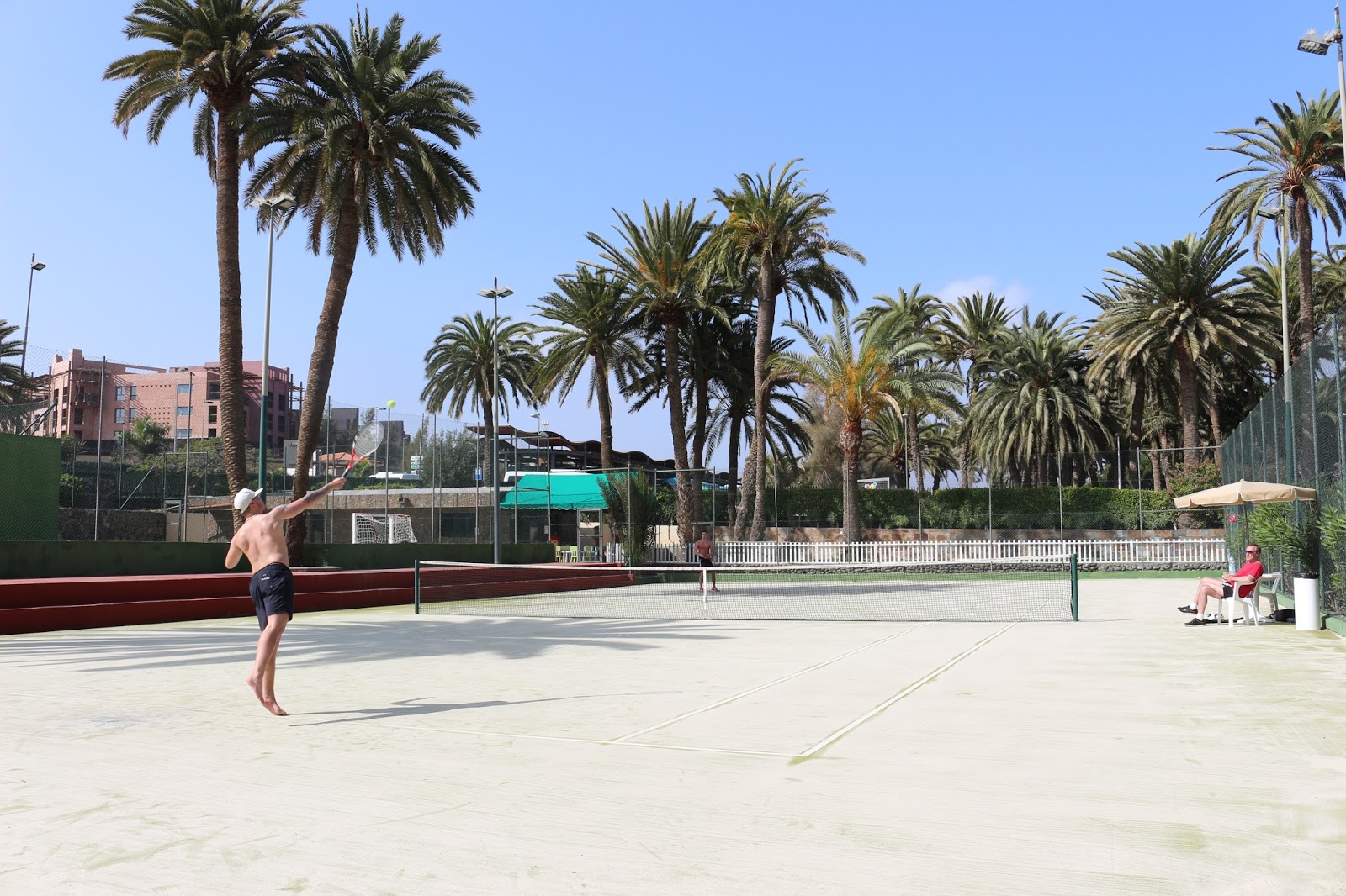 Hotellilla oli 3 tenniskenttää, golfin lyöntipaikka ja puttausalue, ulkokuntosali, pingis- ja biljardipöydät, lentopallokenttä jne. Kävimme päivittäin koko porukka salilla, pelattiin tennistä ja miehet ottivat chippi- ja puttikisoja tiiviiseen tahtiin. Minä tietenkin joogasin hotellin parv