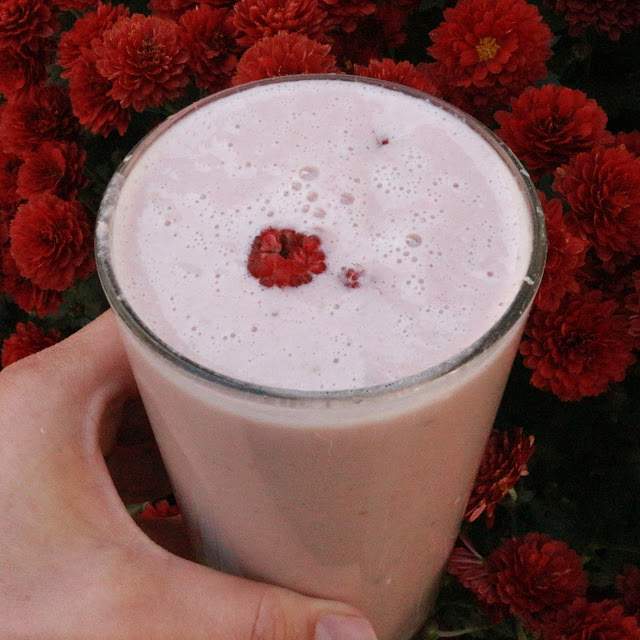 reilu 1 dl jäisiä marjoja+ valmiin juoman sekaan tuoreita marjoja haluamasi määrä