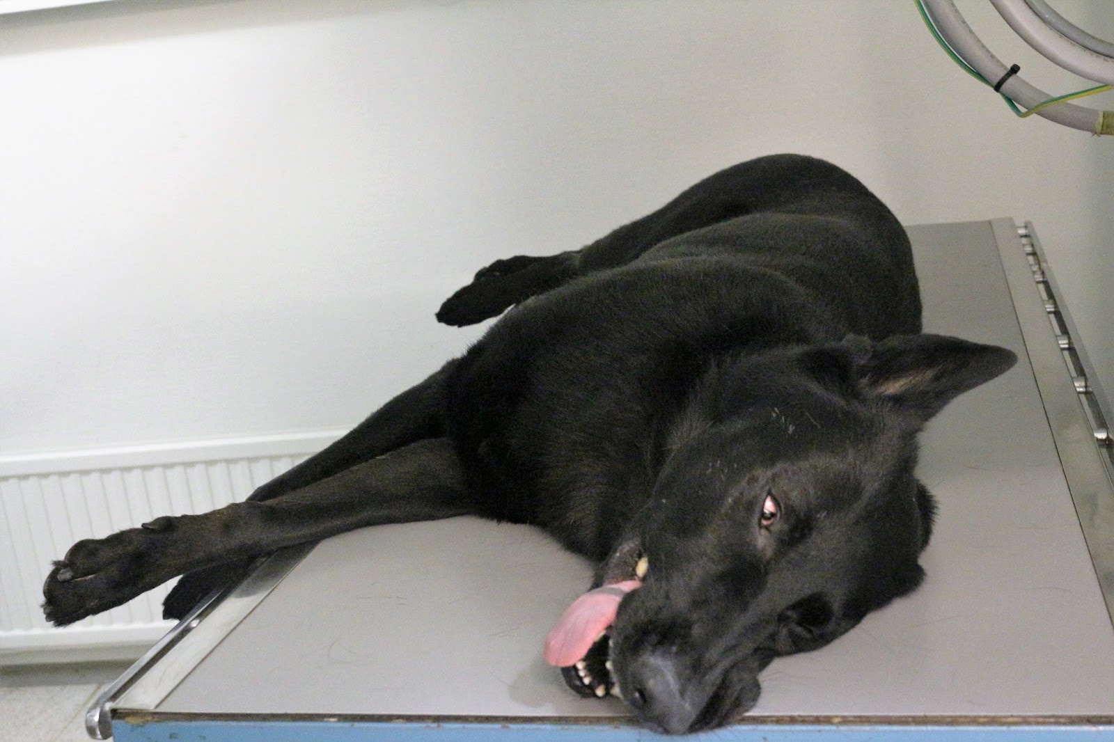 Olimme perillä klinikalla klo 18.08. Kun hyppäsimme taksista, Tuto törmäsi klinikan pihassa Kariin, josta sitten riemu repesi- hyvä ettei menty karmit kaulassa klinikalle:) Pian Neito olikin unten mailla ja kuvauksissa saatiin selvyys pitkään jatkuneeseen epätietoisuuteen, josta kerron seuraavassa postauksessa. Tiedossa on hyviä ja huonoja uutisia. Sen verran voin kuitenkin jo kertoa, että syy koiran oireisiin löydettiin eli kaikkiin niihin asioihin, joita itse olen epäillyt löytyi vahvistus röntgenkuvista. Tässä on vähän sulateltavaa ja purankin ajatuksia postauksen muodossa lähipäivinä…