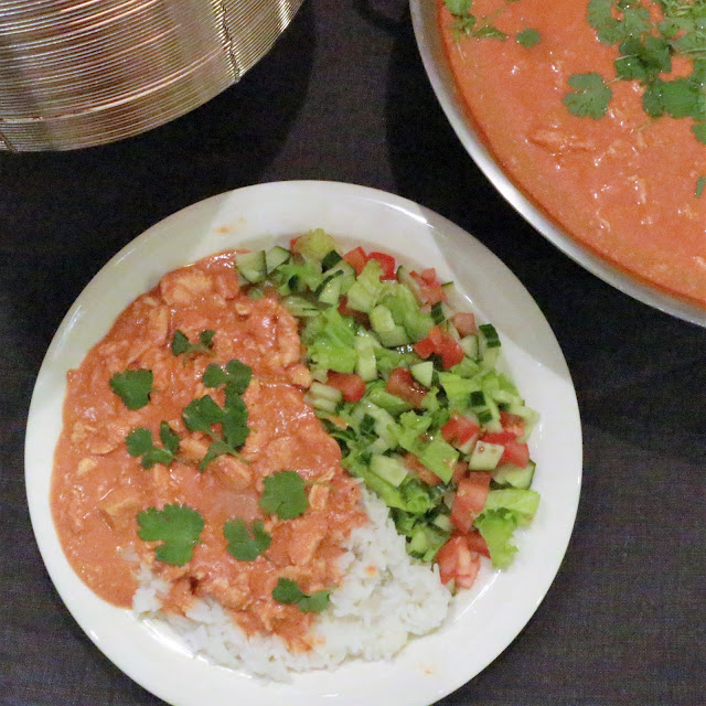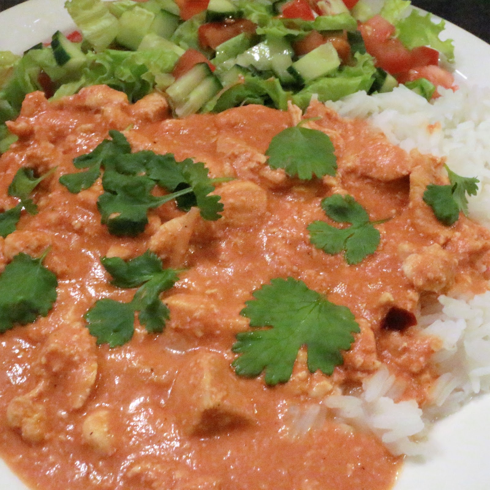 Olen muokannut ohjetta siten, että se sopii myös maidottomaan ruokavalioon. Toki voi pitää korvata kookosöljyllä, jolloin se ei ole enää voikana, mutta maku on ihan varmasti loistava siitäkin huolimatta. Onhan se tietty vähän koomista ja sama juttu kuin lihakeitto ilman lihaa, mutta parempaan en nyt pysty. Maidotonta ruokavaliota noudattavat korvaavat myös turkkilaisen jogurtin soija- tai kaurajogurtilla. Garam masala maustetta löysin ihan lähi k-kaupasta, joten uskoisin, että sen saatavuus on ihan hyvä. Vähän mietin tuota raastettua inkivääriä: pelkäsin, että maku tulee liikaa esiin, mutta pelko oli todellakin turha. Olenkin laittanut itse inkivääriä huomattavasti enemmän kuin tuon 2 tl, koska se mielestäni parantaa makua entisestään.