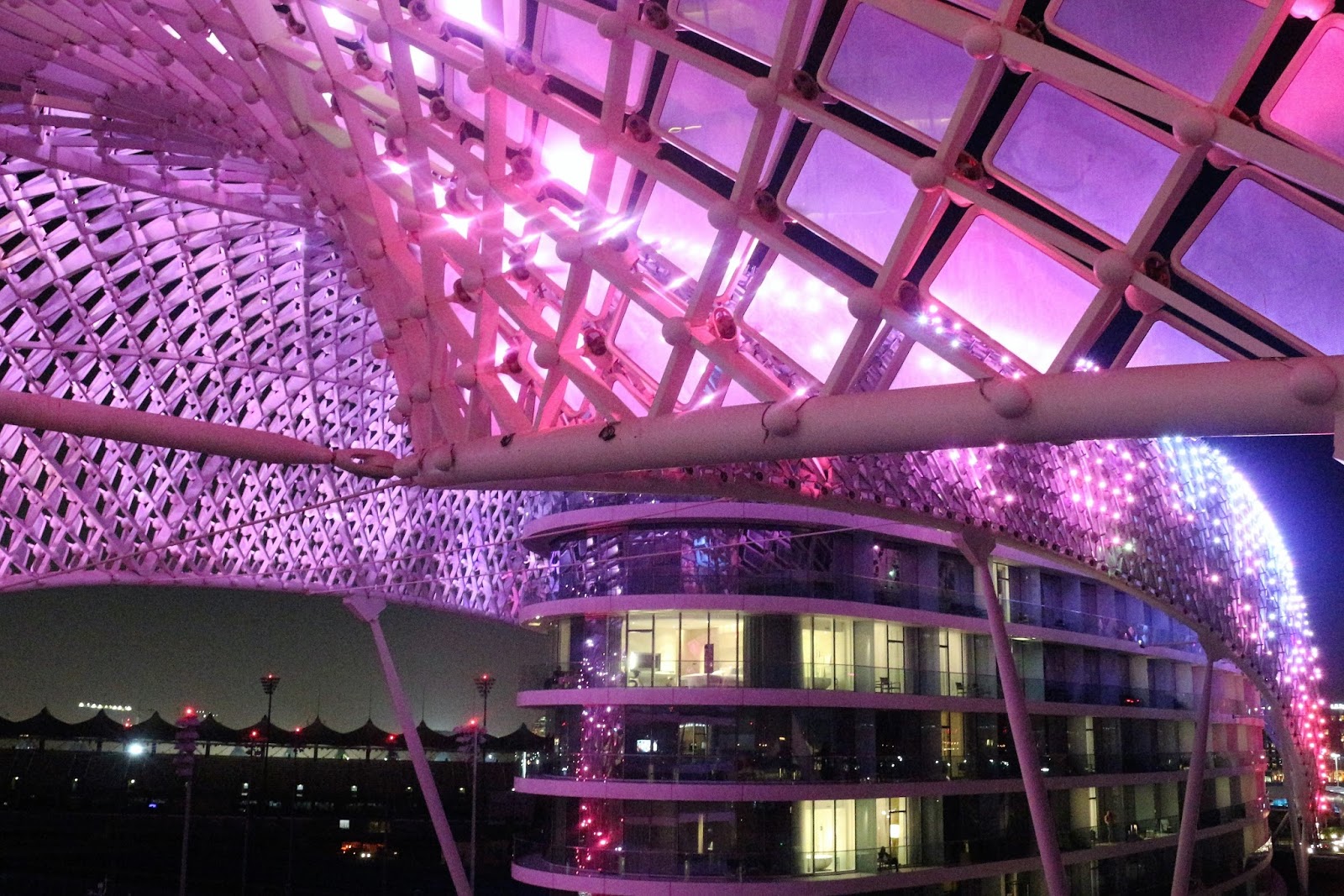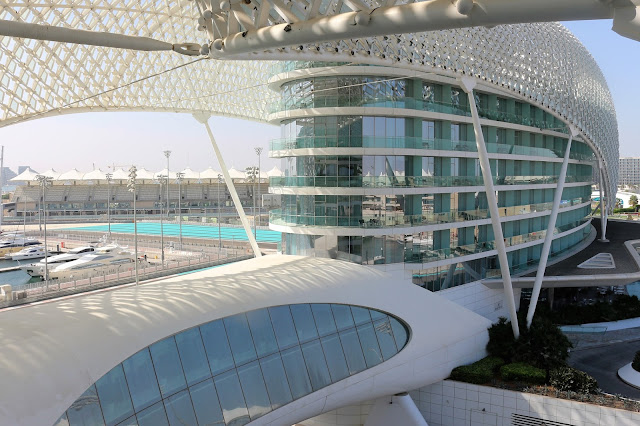 Majoitumme Yas Viceroy Abu Dhabi hotellissa. Olemme reissanneet aika paljon, mutta emme koskaan ole olleet vastaavanlaisessa hotellissa aiemmin. Yllä olevissa kuvissa on näkymä meidän parvekkeelta suoraan formula 1 kisojen ajoradalle. Rata menee siis meidän hotellin alapuolella. Oli aikamoinen yllätys, koska emme tienneet tätä eli tämän verran tutustuimme hotellin tietoihin etukäteen! Formula teema toistuu hotellissa joka puolella ja kaikki on niin luksusta kuin olla voi. Tämä on itselleni kolmas kerta Arabi Emiraateissa, mutta aiemmin olen ollut Dubaissa. Ensimmäisen kerran olimme Nopan kanssa kahdestaan äitipoika-lomalla ja sen jälkeen koko perheen kanssa.