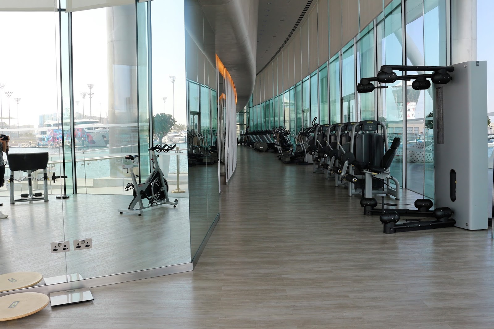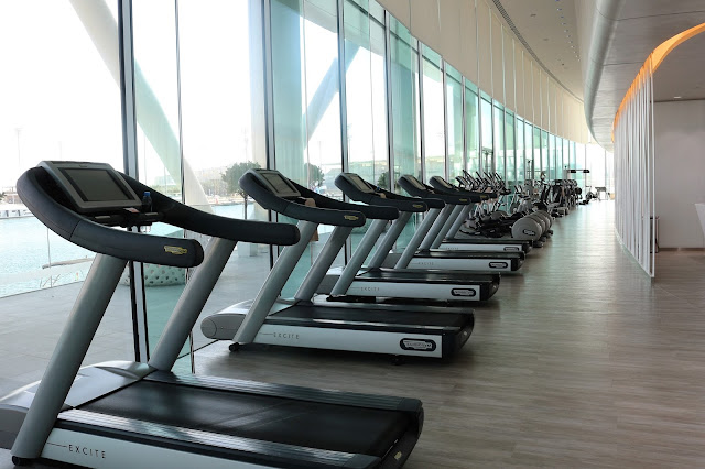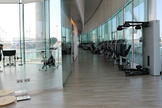 Kuntosali on ihan mielettömän iso ja hieno- tosi kiva kun tulin tänne nimenomaan kuntoilemaan. Toivottavasti kuvat puhuvat puolestaan. Eilen menin heti aamupäivällä salille ja kyllä kelpasi polkea kuntopyörää ja tehdä punttia näitä maisemia ihastellessa. Tänään onkin joogapäivä. Väkisinkin tuli salilla ollessa hieman haikea olo kun mietin miten pojat olisivat nauttineet tästä hotellista. Meillä on aina reissussa tapana kuntoilla yhdessä päivittäin ja nyt minä yksin heilun täällä salilla sitten. No, tänne tullaan kyllä uudestaan koko perheen kanssa kunnes ensin vähän säästetään rahaa:)