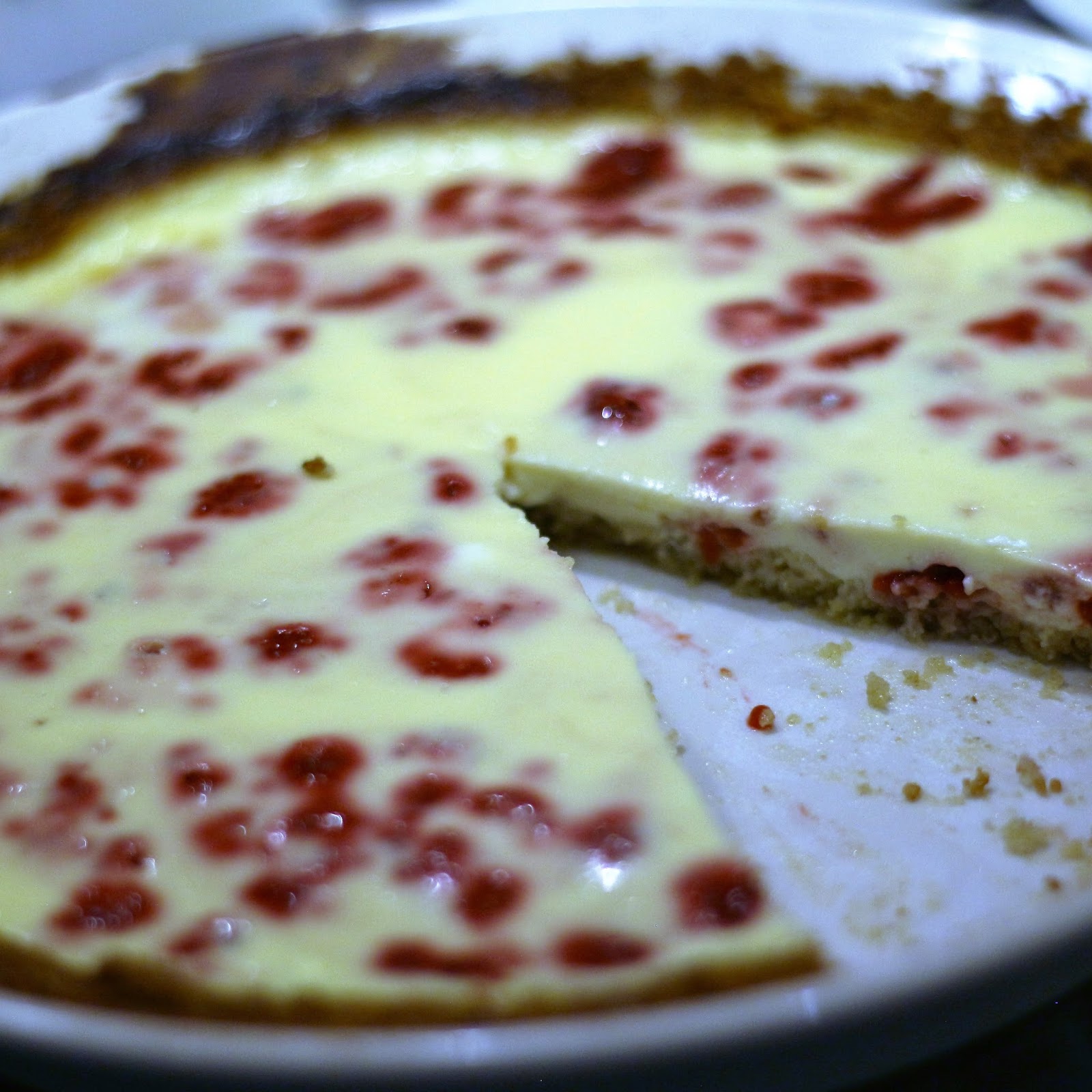 Sekoita täytteen ainekset keskenään ja kaada pohjan päälle. Paista 200 asteessa noin puoli tuntia. Tarjoile jäähtyneenä vaniljakastikkeen kanssa.