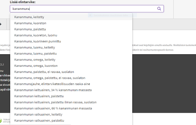 Netistä löytyy sekä ilmaisia, että maksullisia kalorilaskureita. Itse olen käyttänyt Finelin ilmaista laskuria ja nyt kerronkin teille miten laskuria käytetään. En tiedä onko tämä laskuri paras, mutta ainakin omiin tarpeisiini tämä on ollut ihan käyttökelpoinen ilmaiseksi työkaluksi.Ilmaisen kalorilaskurin löydät täältä