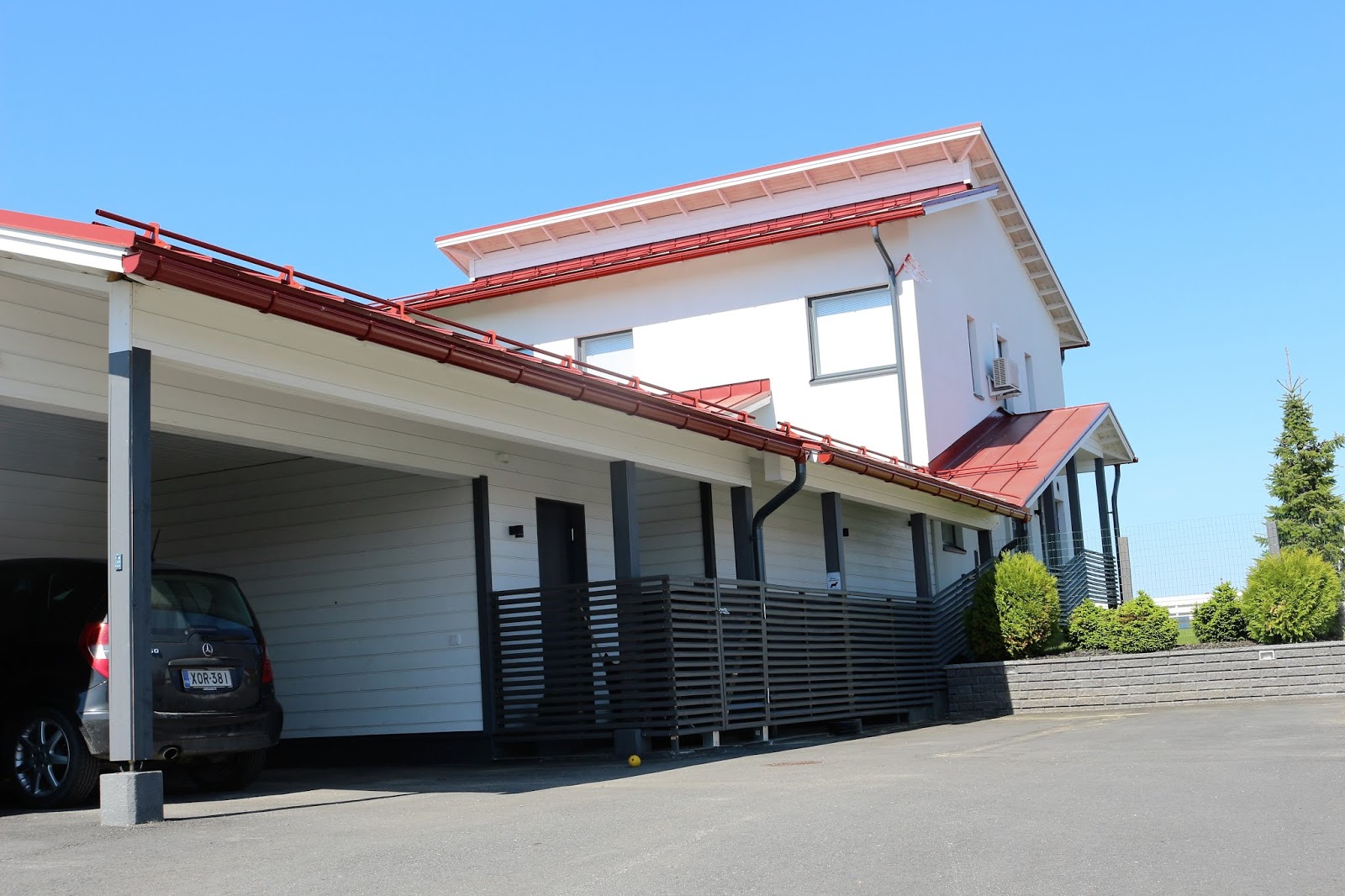 Viime viikonloppuna saatiin valmiiksi meidän tontin aitaus ja lisärimoitus projekti. Alkuun meinasi epätoivo iskeä, kun emme meinanneet löytää mistään sellaista työmiestä, jolla olisi ollut aikaa tehdä homma. Lopulta kuitenkin löydettiin aivan loistava henkilö tähän hommaan ja aidoitus etenikin rivakasti kahden viikonlopun aikana. Tarkoituksena oli ”tukkia” tontilta kaikki raot, jotta koiria (saksanpaimenkoirat, joista toinen on poikani koira eikä asu meillä, mutta vierailee säännöllisesti) voisi pitää huoletta vapaana pihalla ilman valvontaa. Talon ympärille oli jo aiemmin tehty puuaitaa ja sisäänkäynti oli suurelta osin jo rimoitettu eli kyseessä oli säänkäynnin osalta lisärimoitus ja oven tekeminen. Takapihan puuaitaa korotettiin korkeammaksi, etupihalle lisättiin verkkoaita ja tontin sivulle vielä verkkoaita kiviaidan eteen. Kerron tässä postauksessa kuvien muodossa tarkemmin mitä tehtiin.