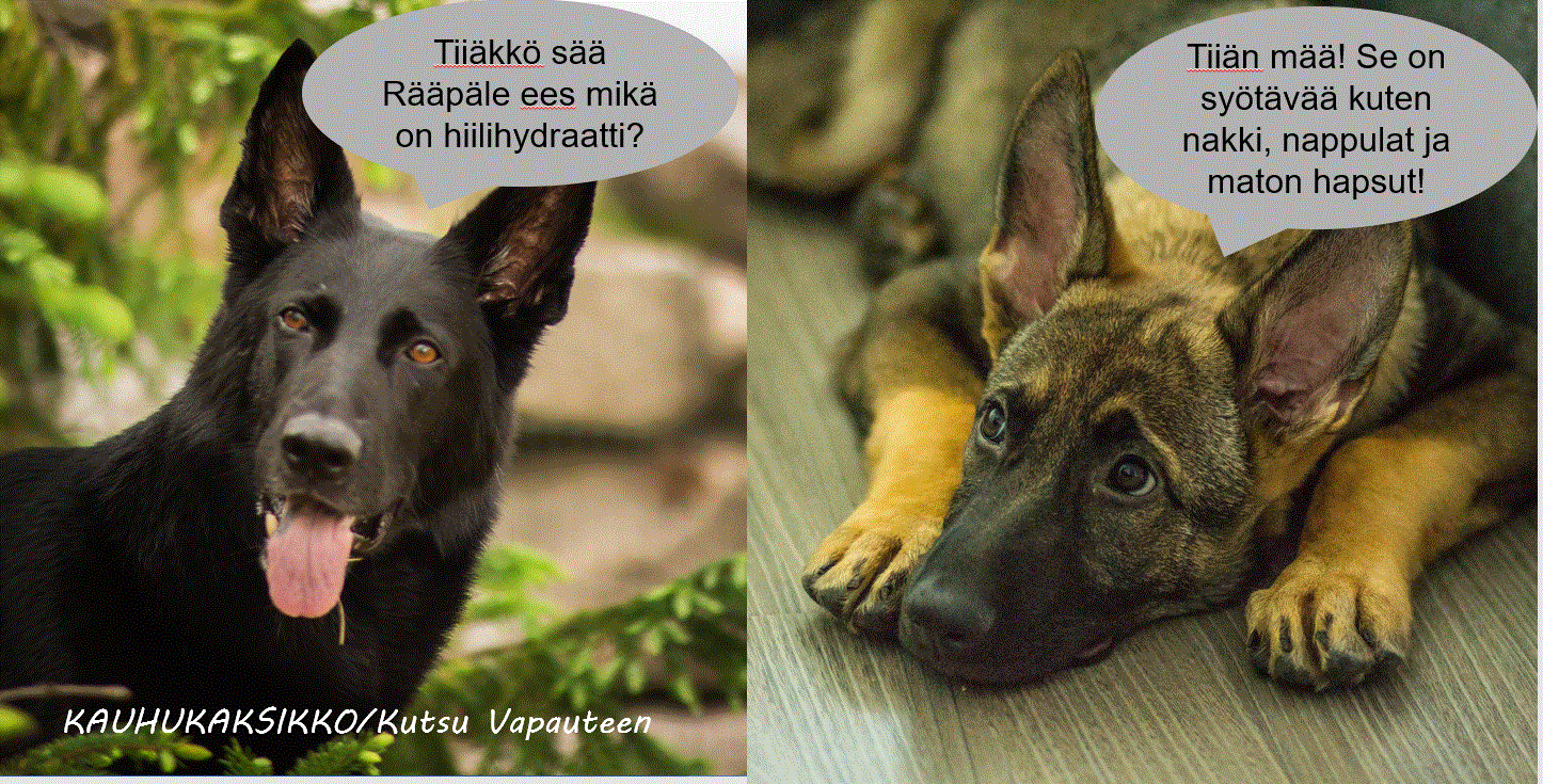Viikko sitten Allu ja Rääpäle muutti Kuopijoon. Meikä oli surullinen ja vaan seiso keskellä olohuonetta ja tuijotin Mammaa. Viiden päivän päästä Allu, Rääpäle ja Moona tuli viikonlopuks meille ja täytyy sanoa, että silloin kyllä tilanne eskaloitui: pistettiin semmoset painit pystyyn, että Mamma meinas tulla hulluksi ihan muutamassa minuutissa. Teen nyt ilman lupaa yhen paljastuksen: Mamma on vähän tai siis paljon neuroottinen siivouksen suhteen eikä se tykkää yhtään jos tulee sotkua. Pakko myöntää, että joskus sitä sotkuakin sitten tulee? Nii jos Mamma sitten nipottaa sisällä tuon siisteyden suhteen, niin Iskä nipottaa ulkona: yhtään ei sais kuoppia kaivaa meiän nurmikkoon ja pakko myöntää, että joskus niitä kuoppiakin sitten tulee? Sillon kun me pistetään niinsanotusti isoa vaihdetta silmään, niin Mamma vie meiät normaalia pidemmällä metsälenkille ja sanoo, että täällä ollaan tytöt nyt niin kauan, että kaikki energiat on purettu. Kauan ollaan monesti. Mutta ei sitä kyllä uskois miten paljon voi tuommosta Rääpälettä olla ikävä? Vaikka osaa se kyllä olla ärsyttäväkin: jos Meikä näyttää sille hampaita ja murisee, niin se vaan heiluttaa häntää ja työntää kielen Meikän hampaiden välistä ihan kitalakeen asti?