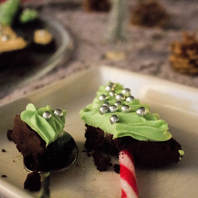 Leivoin näitä jouluisia piparminttu-suklaaleivoksia itsenäisyyspäiväksi. Nämä leivokset ovat täysin jauhottomia ja jos pohja kuulostaa tutulta, niin näissä vhh suklaa-vadelma-browniessa on käytetty samaa pohjaa (tähän ohjeeseen aineiden määrä on tuplattu). Kun olin koristelemassa näitä leivoksia, vanhempi poikani Allu saapui kotiin Kuopiosta ja sain hänestä apua koristeluun. Aina on yhtä ihana huomata miten aikuinenkin poika innostuu koristelusta ihan samaan tapaan kuin lapsena?? Muistakaahan nyt käydä osallistumassa Puhdas+ lahjakortin (arvo 69 euroa), joka on meneillään parastaikaa blogissa.