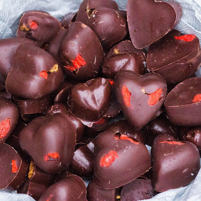 Tällä viikolla testasin ensimmäistä kertaa kahta Foodinin raakasuklaan valmispakettia: ”tavallista” ja chai-appelsiini raakasuklaata. Vaikka raakasuklaan valmistus ei ole muutoinkaan vaikeaa, niin näiden pakettien avulla se on todella vaivatonta, nopeaa ja helppoa. Sulatat ainoastaan vesihauteessa raakasuklaamassan, kaadat sen muotteihin ja ripottelen suklaan sekaan haluamiasi juttuja kuten esimerkiksi kuivattuja marjoja, pähkinärouhetta tai vaikkapa kuivattuja inkiväärin paloja. Pakettien mukana tulee myös muotit, joten niistäkään ei tarvitse huolehtia. Yhdestä paketista tulee 40 konvehtia ja raakasuklaan valmistuspaketin (ruskea) mukana tulee myös kuivattua mustikkaa, mulperia ja karpalorouhetta. Meidän perheen ehdoton suosikki on chai-appelsiini raakasuklaa, joka maistuu appelsiiniöljyn, neilikan, kanelin, inkiväärin, vaniljan ja kardemumman ansiosta ihan uskomattoman herkulliselta. Voit tarkastella tuotteita täältä ja täältä.
