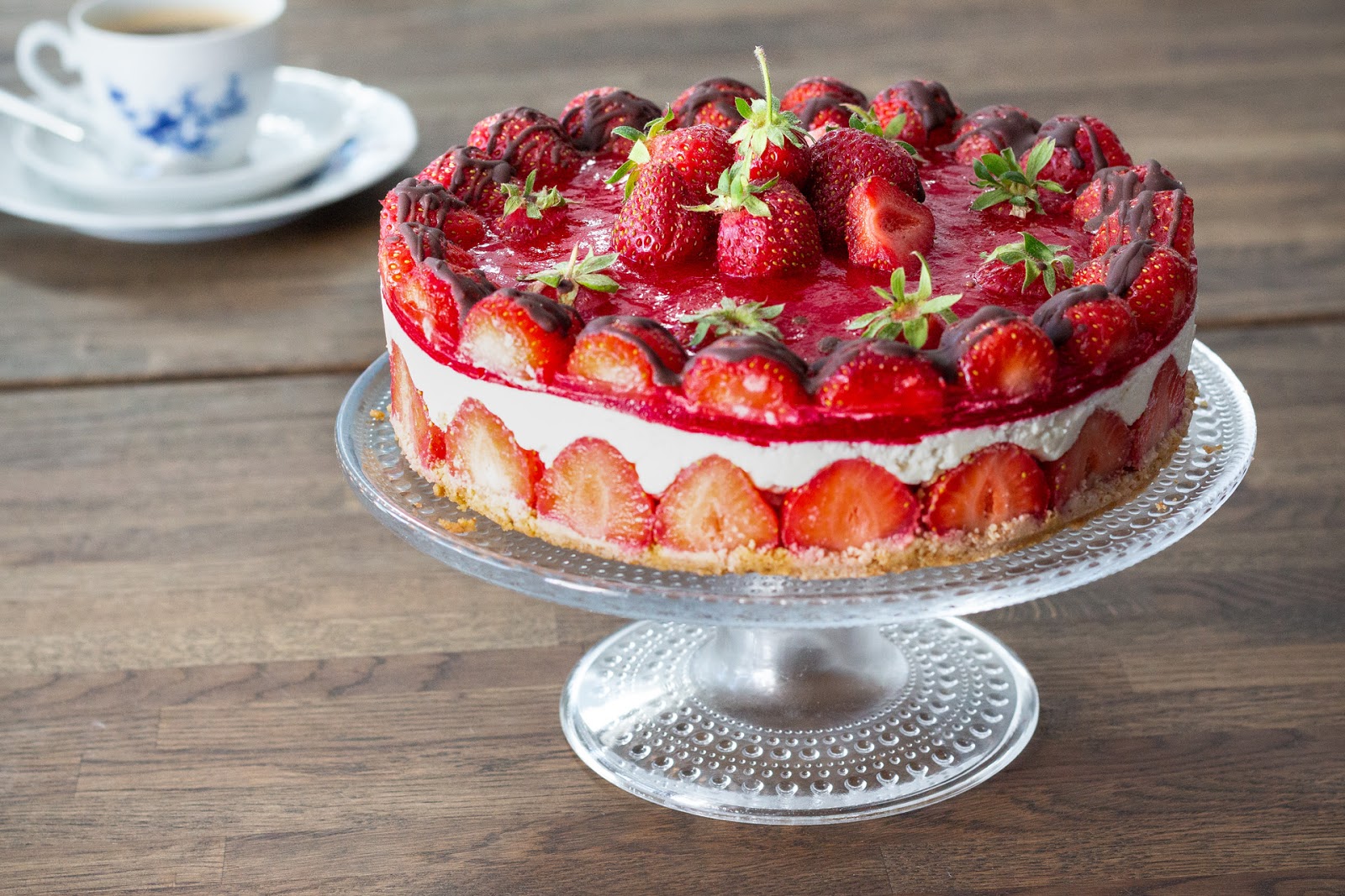 Vähähiilihydraattinen: käytä makeutuksessa karppisokeria ja valitse vähähiilarinen pohjavaihtoehto. Mikäli olet tosi tarkka hiilareiden kanssa, niin käytä koristelussa vähemmän mansikoita. Esimerkiksi täytteen alareunassa olevat mansikat voi jättää kokonaan pois. Muista blendata vhh sokerit blenderissa ennen käyttöä etteivät ne narsku ärsyttävästi hampaissa. Mikäli et halua tehdä vhh kakkua, niin voit käyttää täysraakaruoko- tai kookossokeria vhh sokereiden sijasta.
