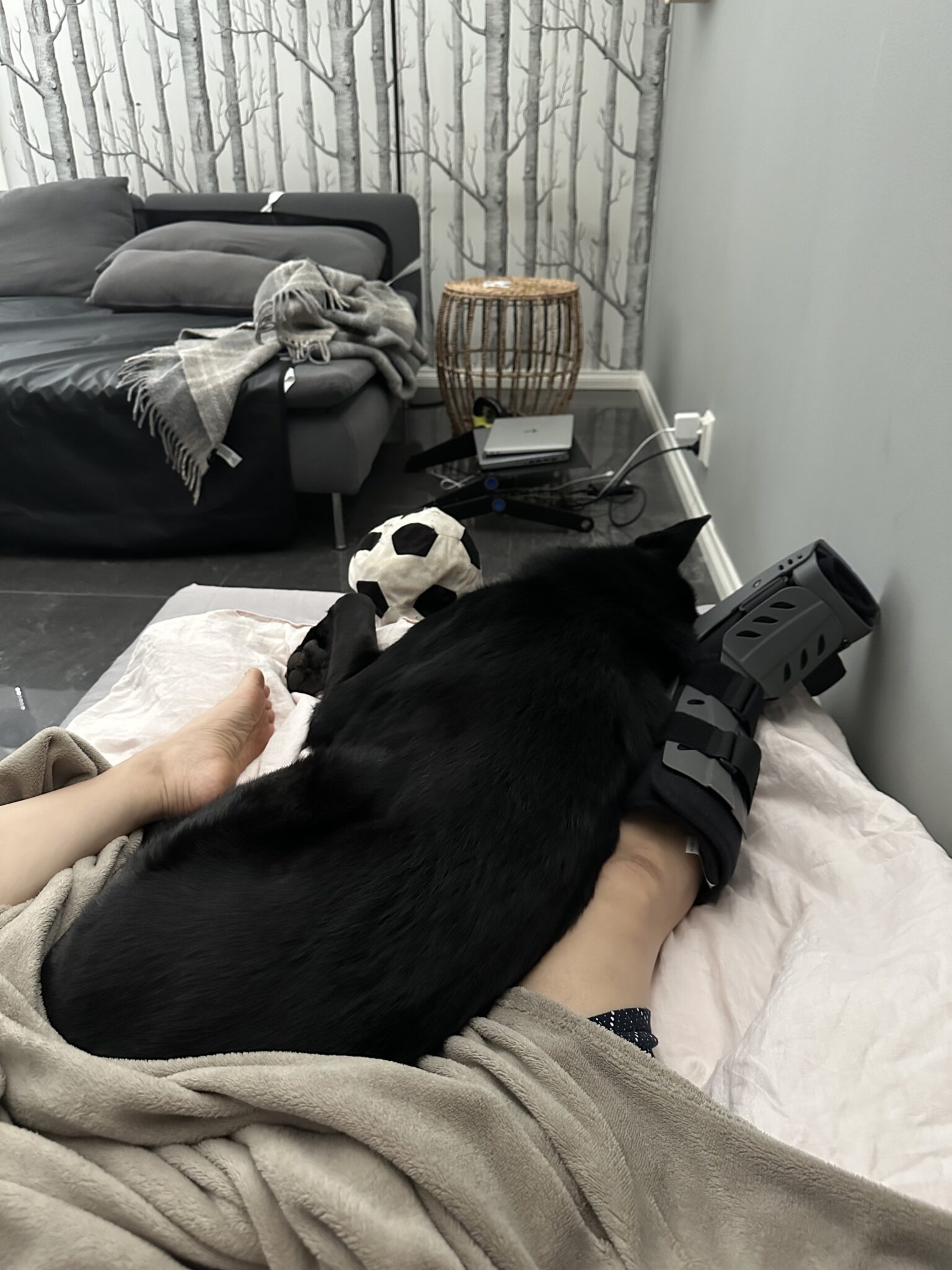 Tilanne ei olisi niin haastava ellen olisi minä. Jos harrastaisin vaikkapa neulomista, ristisanojen täyttämistä, shakin pelaamista tai tykkäisin löhötä sohvalla tuntikaupalla, niin tilanteessa voisi olla jotakin hyvääkin. Oon liikkunut aina joka päivä tunnin pari: jo 7-vuotiaana koulusta tullessani heitin repun nurkkaan ja lähin ensimmäisenä purunradalle juoksemaan 7,5 km (aina sama matka). Mikään muu tekeminen ei korvaa liikunnan tuomaa hyvää oloa eli sitä ei voi millään korvata. Lisäksi harrastan Oven kanssa suojelua, jossa tarvitaan minunkin jalkoja. Saatiin maanantaina kokeessa IPG1 koulutustunnus ja olisi ollut kiva jatkaa treenejä ensi viikolla.