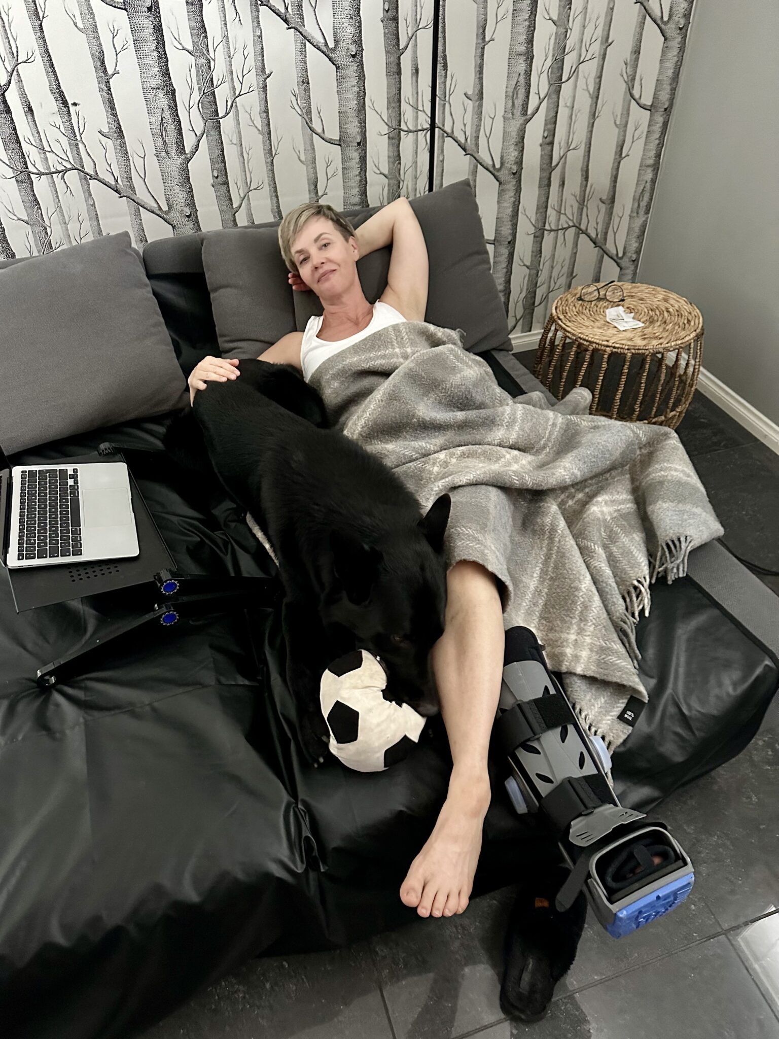 …mutta just nyt en jaksa suhteuttaa tätä Ukrainan sotaan tai mihinkään muuhun kamaluuteen. Ryven itsesäälissä vielä muutaman tunnin ja sitten raahaan itteni olohuoneen matolle kahvakuulan kanssa ja alan jumppaamaan ylävartaloa ja vatsoja sen mitä pystyn. Töihin haluan palata heti kun pystyn varamaan jalalla edes vähän. Ja koiratreeneihin raahaudun samantien kun pystyn edes joten kuten kävelemään…